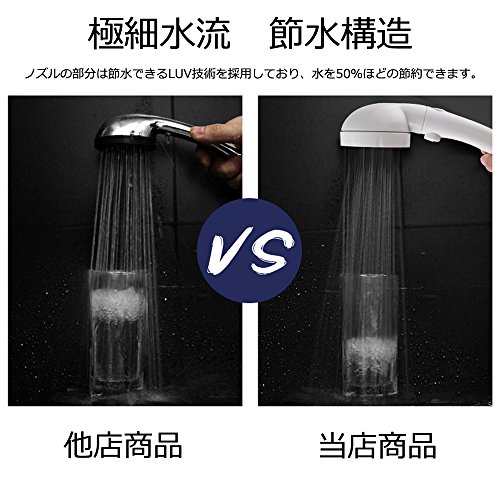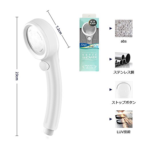 - 節水構造:ストップボタンと独自の設計で水のムダ使いを省きます。ノズルの部分は節水できるLUV技術を採用しており、水を50%ほどの節約できます。節水機能なしのシャワーより、少ない水量でも同等の使用感が得られます。