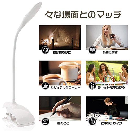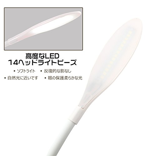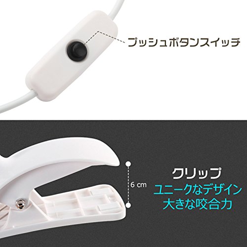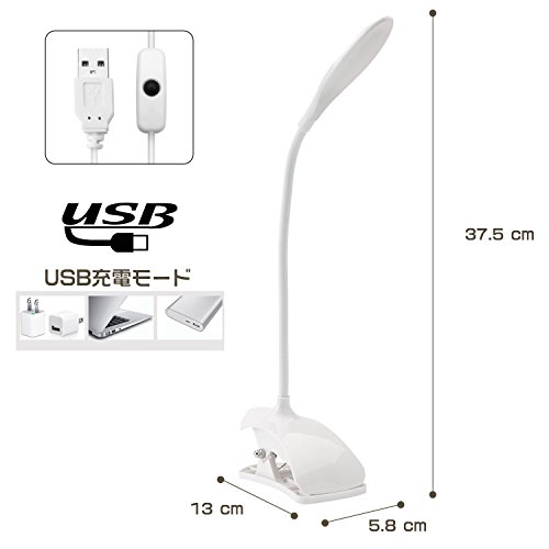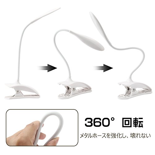 - 【軽量·コンパクト·シンプル】小型で軽く、真っ白でシンブルなデザインでインテリアとしても使えます。アーム部分は自由に曲がるので、好きな角度に調整可能です。通常の勉強や読書はもちろん、スマホでの写真撮影の照明にも使えます。