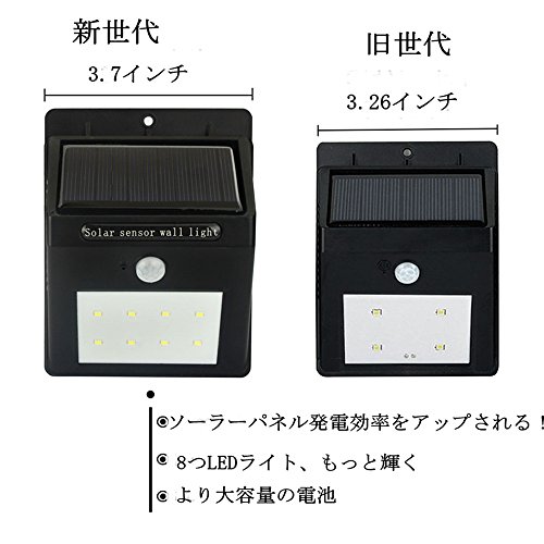 ALED LIGHT LEDソーラーライト LEDセンサーライト 防水 IP65 8LEDソーラー充電式LEDライト 省エネ 夜間自動点灯 人感センサー アウトドアライト 門扉用ライト 屋外照明 軒先 庭 ガーデン ドライブウェイ 玄関 昼白色 (1)