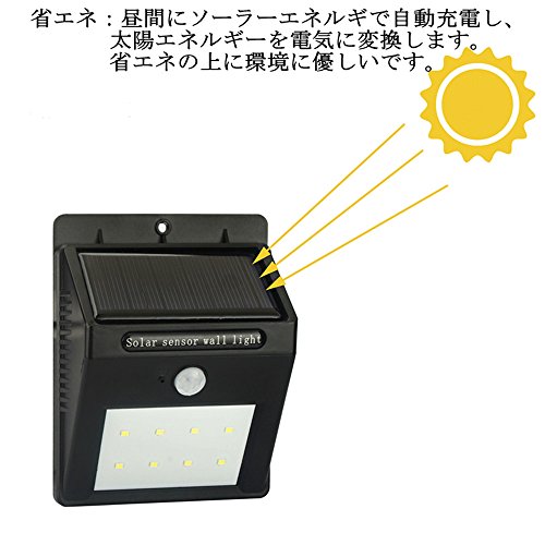 ALED LIGHT LEDソーラーライト LEDセンサーライト 防水 IP65 8LEDソーラー充電式LEDライト 省エネ 夜間自動点灯 人感センサー アウトドアライト 門扉用ライト 屋外照明 軒先 庭 ガーデン ドライブウェイ 玄関 昼白色 (4)