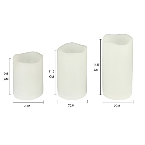 - 【仕様】サイズ(L) : (約)直径7cm×高さ14.5cm サイズ(M) : (約)直径7cm×高さ11.5cm サイズ(S) : (約)直径7cm×高さ9.5cm リモコン : (約)3.5cm×8.8cm×0.5cm 【環境保護&節約】:電池で光るキャンドルライトは繰り返して利用できます。また、電池式で置き場所を選ばず、玄関や窓際、リビングテーブルの上、ベッドサイドなど、様々な場所で使えます。音の出る可動パーツを使っていないので、とても静かです。