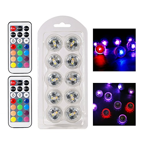ALED LIGHT LED潜水ライト 水中LEDライト サブマリンLEDランプ 魚タンクライト SMD3528 防水 RGB マルチカラー 10個入り 電池式 リモコンで操作 安全 カラフル 潜水ライト LED飾り付け 金魚鉢 室内電飾 クリスマス パーディー 結婚式 誕生日会 屋外など