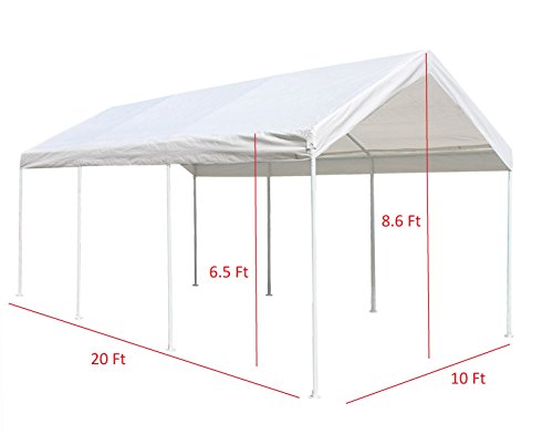 の10 x 20アレコカーポートの特徴は、防水性があり、heat-sealed白ポリエチレンのトップ。6つの脚のカーポートには1 – 1 / 2インチの直径スチールフレームを作成することもできますを得るためのスチールフレームはパウダー、はがれ、さび、腐食から守ります。カーポートアレコは200平方フィートのシェードとあなたの大切な人を保護、車、ボートまたは他のアイテムを格納することができます。「heat-sealed , triple-layer ,ポリエチレンカバーはUV加工fade-protectorsとアンチエイジング効果のあるエージェントを使用してください。追加の壁にカーポート販売され、個別に設定されます。