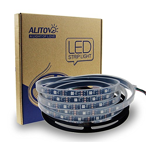 ALITOVE 16.4ft WS2812B 個別アドレス可能、LEDテープライト5050RGB SMD 150個ピクセル夢色 防水 黒いベース 5V DC