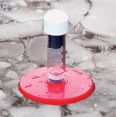 Vent harmful gasses from your frozen pond with the Allied Precision Pond Breather. Harmful gasses from decomposing matter and accumulated fish waste can be trapped under the ice in your pond and can reach toxic levels possibly harming your fish and plants if not allowed to escape. Rather than heating a hole in the ice the revolutionary Pond Breather is designed to float in your pond freeze into ice as thick as 15 inches and move a steady stream of water above the ice layer where gas exchange can then occur. Operating on 120 volts and at an efficient 40 watts the Pond Breather uses 31 times less energy than 1250 watt pond de-icers. Every 24 hours the Pond Breather exposes 4 000 to 10 000 times more surface area of water than conventional heaters or de-icers. Supplying only enough heat to keep the water flow open the Pond Breather creates a gentle current to move oxygen throughout your pond. Eliminate toxic gasses from your pond with the Allied Pond Breather.