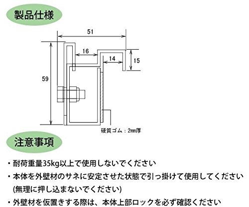 コンパクトで軽量、腰袋にもすっぽり入ります 二段目以降のサイディングの仮置きやサイディングに配線を通す際に仮置き出来るので、二人で行っていた作業が一人でも行えます。 サイズ 個装サイズ:16×11×4cm 重量 個装重量:140g 素材・材質 本体:ステンレス 緩衝材:硬質ゴム 仕様 耐荷重:35kgまで 対象サイディング厚み:14mm 【用途】 外壁サイディング張り時の仮置き補助具 外壁サイディングに配線を通