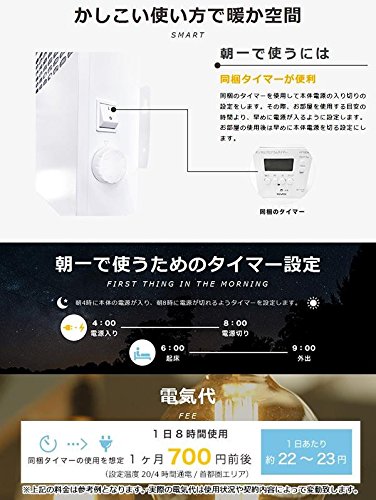 - 00V 消費電力:300W コード長:1.3m アース線:有 プロテクションクラス:IP21 対応畳数:1~2畳 付属品 取扱説明書、保証書(保証期間1年)、2ピン変換プラグ、デジタルタイマー、ビス×4、アンカー×4 製造国 ノルウェー 小型暖房機で冬の冷え切ったトイレ・脱衣所を快適空間に◎