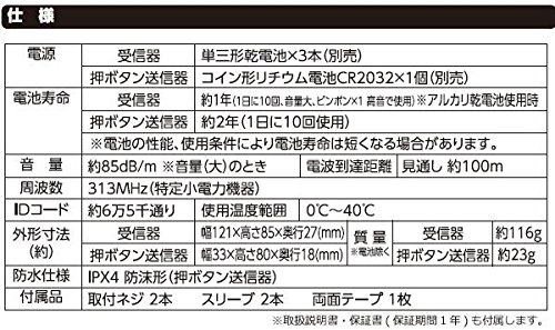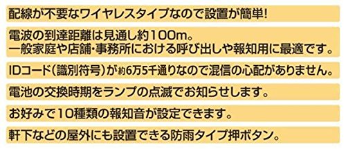 - 防雨タイプの押ボタン送信器と受信器のセットです。一般家庭や店舗・事務所における呼び出しや報知用に最適です。 fk094igrjs