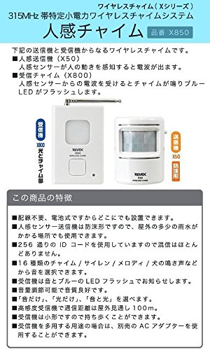 REVEX リーベックスワイヤレス 人感チャイムセット X850