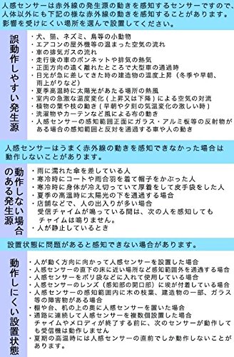 - 製造国 中国 人や動物の動き(熱)を感知して離れた場所に光と音でお知らせ!! 来客時のお知らせや、徘徊するお年寄りの検知に。人や動物の動き(熱)を感知し、離れた場所にある受信機に光やチャイム音で