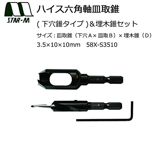 スターエム ハイス六角軸皿取錐(下穴錐タイプ)&埋木錐セット 3.5×10×10 58X-S3510