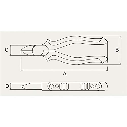 ●メーカー名VICTOR(ビクター) ●型番361-HG-200 ●強力ニッパ薄刃。 ●刃先を薄くし、よりシャープな切れ味とフラットな切断面を実現しました。 ●エラストマーカーバー付。 ●仕様 ■サイズ(mm):200(8”) ■全長(A;mm):219 ■寸法B(mm):53 ■寸法C(mm):26 ■寸法D(mm):13 ■刃幅(mm):29 ■切断能力(mm):鉄線・2.6φ/銅線・4.0φ ■重量(g):330 ●注意事項 ※非絶縁工具です。通電中(活線)の作業には使用しないでください。