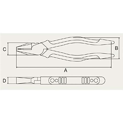 - m):230 ■寸法B(mm):55 ■寸法C(mm):27 ■寸法D(mm):13 ■刃幅(mm):20 ■切断能力(mm):鉄線・4.0φ/銅線・5.0φ ■圧着能力(mm):1.25~3.5 ■重量(g):340 ●注意事項 ※非絶縁工具です。通電中(活線)の作業には使用しないでください。感電の恐れがあります。 ※安全の為、保護メガネを着用ください。 ■メイン画像は代表画像です。
