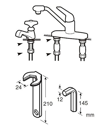 - 立水栓や混合栓(対辺約24mm)のロックナットを回す時に使用します。六角スパナはハンドルとして使用し、多角穴ザルボの取付けにも使用できます。 fk094igrjs