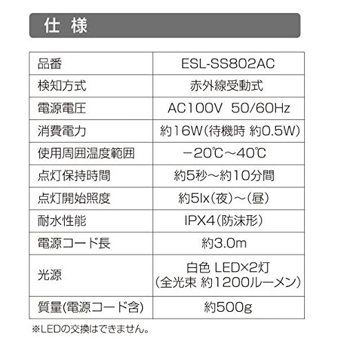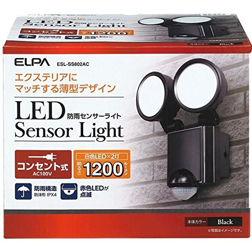ELPA(エルパ) LEDセンサーライト 2灯 コンセント式 ESL-SS802AC