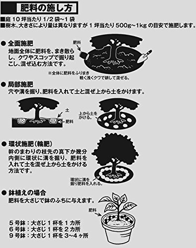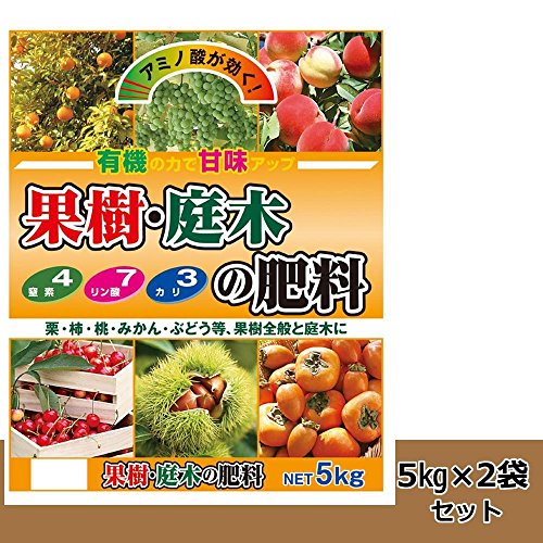- %、リン酸7%、カリ3% 仕様 肥料(ペレット状) 家庭園芸専用 セット内容 5kg×2袋セット 製造国 日本 花・葉を色鮮やかに♪ 果樹の生育に合わせて作られた有機入りの専用肥料です。油粕・骨粉など、良質の有機質をたっぷり配合しており、樹木が必要な時期に長く効