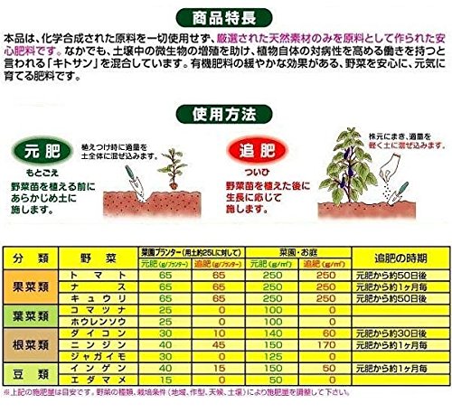 - には動物由来たん白質が入っていますので、家畜などの口には入らない所で保管・使用して下さい。 有機100%の原料で野菜作りに適した肥料成分バランスの混合になっています。撒きやすいペレット(粒状)品。 fk094igrjs