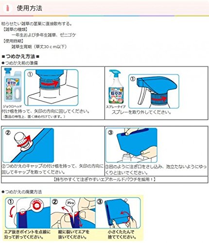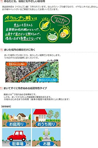 - をかけた場所の雑草だけを枯らします。 ●かけてすぐ効く!約1か月間効果が持続! とうもろこしやかんきつ、茶やホップなどの身近な食品に含まれる成分だから、お子様やペットがいるご家庭でも安心してご使用いただけます。この商品は『みんなにやさしい除草剤おうちの草コロリ1000mlスプレー』用の詰替え用です。 f
