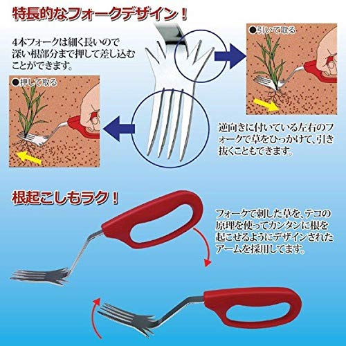 - 【出荷目安】:3 - 8営業日 ※土日・祝除く 【同梱区分】:TS 1102 【梱包サイズ】:通常商品 【メーカー名】清水製作所 ●雑草をガツッと根こそぎ掘り起こす! ●長く強力な4本のフォークで根深い草もラクに掘り起こす! ●引き抜きもできる逆向きの両側2本フォークも便利! 雑草を手を汚さずにしっかりと抜くための草抜きグッズです。今までに見たことの無い大きな4本の強力フォークが作業をラクにします。フォーク部分が長いので深くささり、テコの原理で根起こしがカンタンに。地面に張り付いたような草は、フォークですくうようにして取れます。また、特徴的な逆向きに左右に付いている2本のフォークを使って引き抜くこともできます。グリップ部分がループ状にデザインされていますので、力が入りやすく、女性でもラクに作業ができます。 【商品名】スーパー草取りフォーク 【サイズ】約全長28×幅6×高さ6cm 【重量】約148g 【材質】刃:炭素鋼(クロームメッキ) 柄:ポリプロピレン 【付属品】 【生産国】日本 【特記事項】 【注意事項】