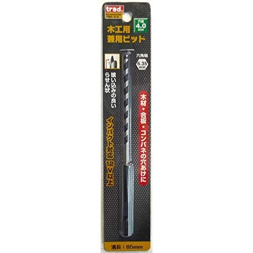 (業務用25個セット) TRAD 木工用兼用ビット/先端工具 【穴径:4mm】 インパクト12V対応 TWK-4.0 〔DIY用品/大工道具〕