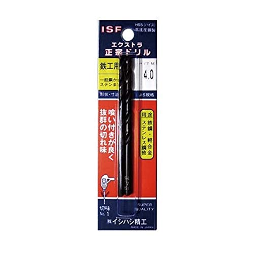 - ●メーカー名イシハシ精工 ●型番P-EXD4.7 ●高速度鋼(HSS) ●標準ストレート尖鋭刃ドリル。 ●切削正能:先端部にクロスシンニングを施していますので喰い込みが早く、切れ味・能率がすばらしく秀れています。 ●一般鋼はもちろん、ステンレスでも、コバルトドリルに劣らない切削性があります。 ●穴径精度:先端2枚の刃先に特殊な平面刃をもち、切削量を一定に保つので、ドリル外径に近い高精度が維持できます。 ●耐久性:普通ドリルの欠