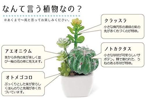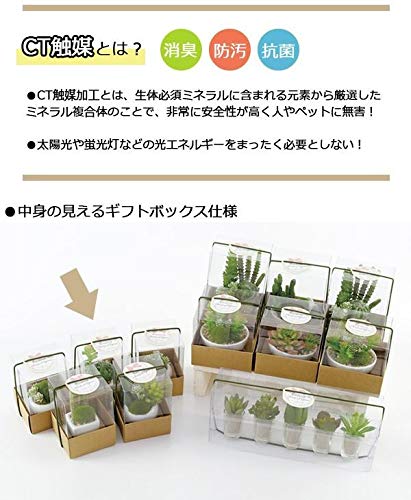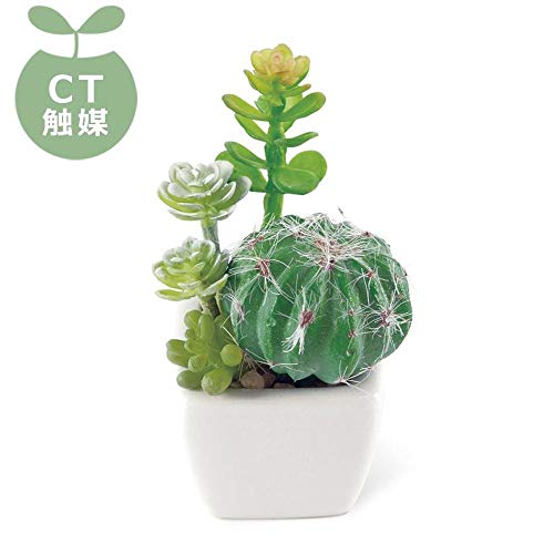 - 陶器 仕様 CT触媒加工 製造国 中国 オシャレな見た目に嬉しい消臭の機能!! 小さな多肉植物やサボテン、コケを寄せ植えしたキュートな消臭アーティフィシャルグリーンです。コンパクトなサイズで、玄関や洗面所、デスクなどインテリアのちょっとした場所を手軽に楽しく彩ります。