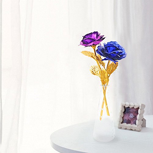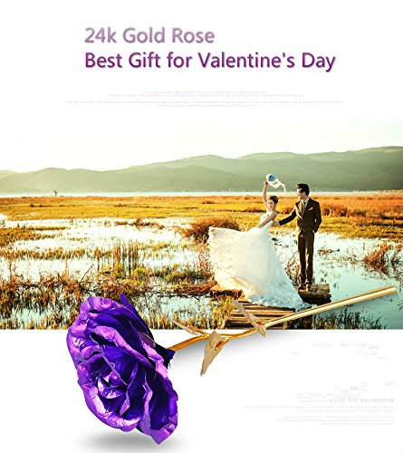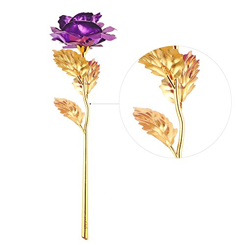 24 Kゴールドローズ、allomn Long Stem RealローズDipped inゴールドwithギフトボックス、Bestバレンタインの日ギフト パープル