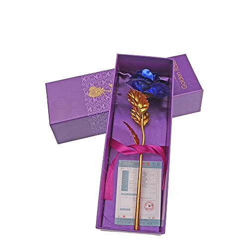 24?Kゴールドローズ、allomn Long Stem RealローズDipped inゴールドwithギフトボックス、Bestバレンタインの日ギフト ブルー