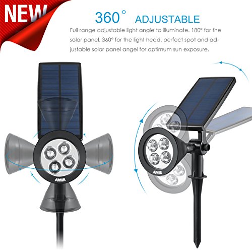 Amirソーラーライト、360 ??調節可能なソーラーLEDアウトドアスポットライトスーパー明るい壁ライト、アウトドア、風景ライト、防水セキュリティナイトライト(ホワイト) 14.4 ounces US-PL6