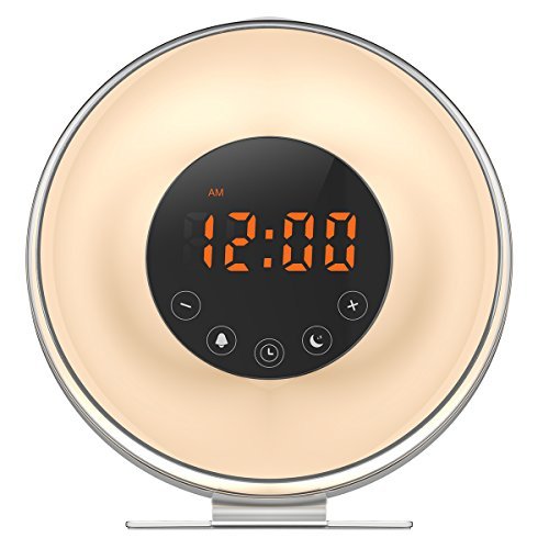 AMIR ウェークアップライト 6つの自然の音 7つの色 FM ラジオ 模擬日の出日の入り目覚まし時計 スマートうたた寝機能 タッチスクリーン USB充電器