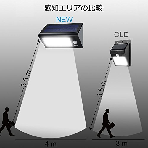 - 【より明るくてより大きい】:Amirの5代目ソーラーライトは24個の大きいLEDライトで より大量の光を提供します。照明範囲5.5m、4代目よりもっと広くなります。 ET/EVA多結晶太陽電池パネルを用いて、五年以上17パーセントの高い変換率 を保持できます。