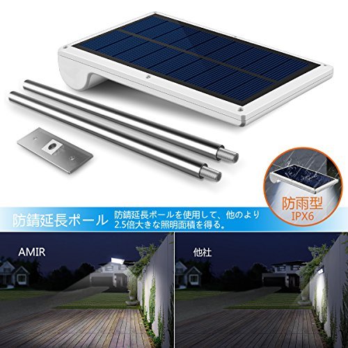 AMIR 人感 ソーラーライト センサーライト 屋外照明 四つの知能モード 29LED灯搭載 太陽発電 自動点灯 省エネ 防犯 IP65防水 壁掛け式 ガーデン 軒先 駐車場 庭先 玄関周りなど対応 (2本入り) 屋外照明/軒先/駐車場/庭先/玄関周りなど対応