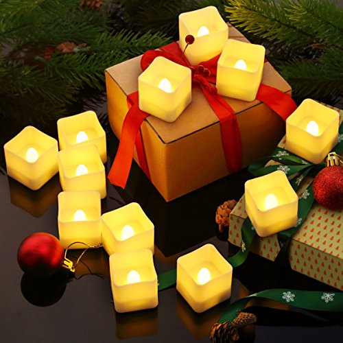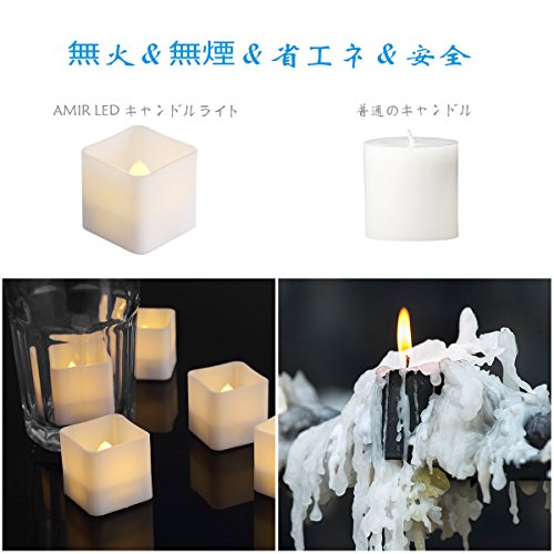 AMIR LED キャンドルライト 揺らぐ炎 電子ろうそく 角型 12個セット LED キャンドル 無煙蝋燭 安全 省エネ 電池式 クリスマス パーティー プロポーズ 誕生日 お盆 飾り ホワイト 暖色光