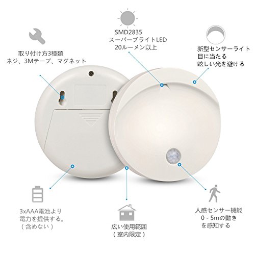 - 改良技術を利用してAMIR3代目人感センサーライトが登場しました。新型のLED技術を採用して、より明るい光を提供しながらより低い消費電力!連続使用時間は50時間以上を達します。