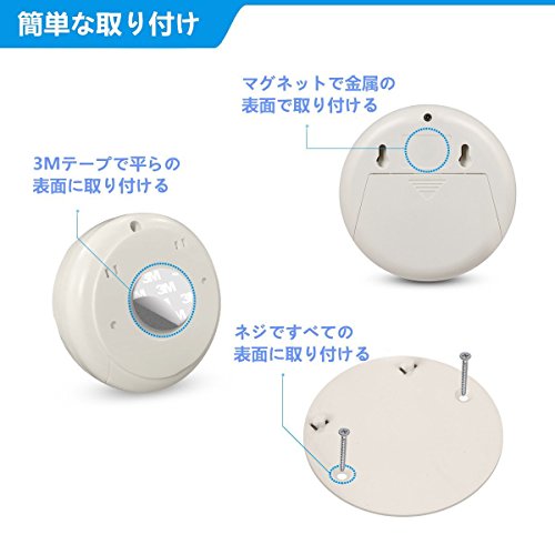 - 単4電池3本で使用でき、配線工事が不要なので設置場所を選ばない。(電池が含まれず)。電池式ですので電力がない停電時や災害の時にも役立ちます。
