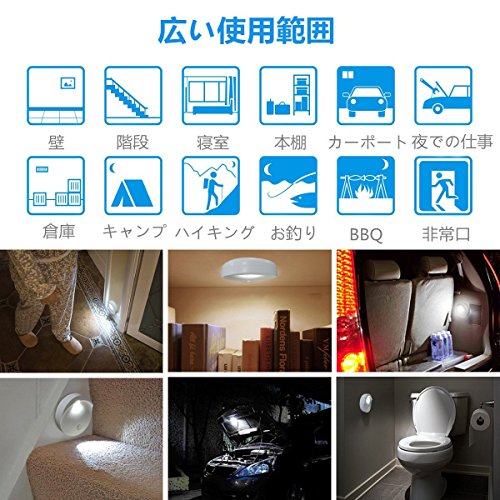AMIR人感センサーライト 電池式 LEDライト 3Mテープ マグネット 磁石付き ナイトライト 室内 ワイヤレス 小型 階段/廊下/玄関/トイレ照明用 足元ライトホワイト 3個セット