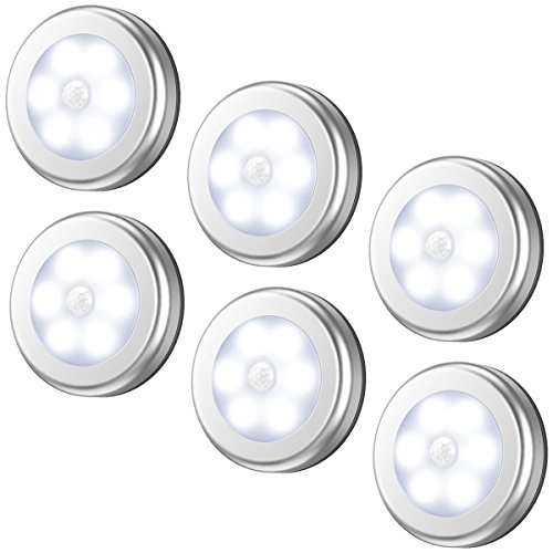 AMIR ledセンサーライト 室内 人感センサー 乾電池式 led ライトライト 明暗センサー 小型 マグネット テープ付き 階段車庫 フットライト 天井照明 6個セット 銀色