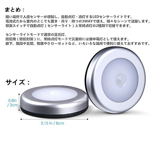 - 【広い使用範囲】お得の6個セット、家庭用には最適です。玄関、廊下、クローゼット、階段、キッチン、赤ちゃん室、押し入れ、作業間、地下室、屋根、車庫、物置、寝室、子供部屋、トイレ前などに全部適用。停電時や災害の時にも役に立ちます。