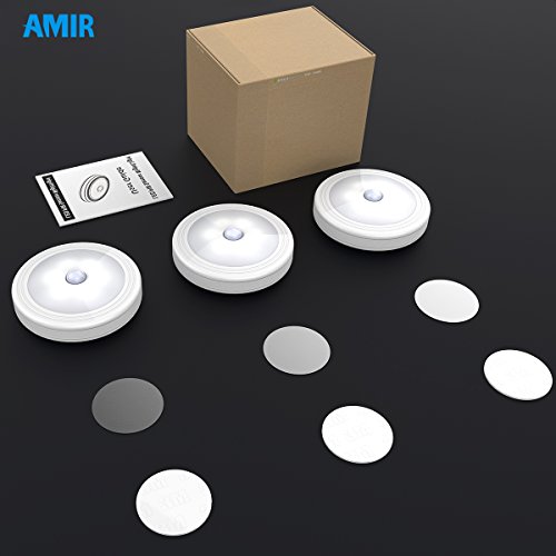 AMIR LED センサーライト 人感センサー ライト 電池式 6個LED電球 小型 ワイヤレス マグネット 磁石付き ナイトライト 懐中電灯 3Mテープ 貼り付け型 クローゼット 玄関 洗面所 階段 室内照明 3個セット 昼白色