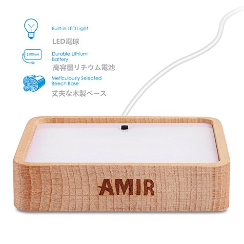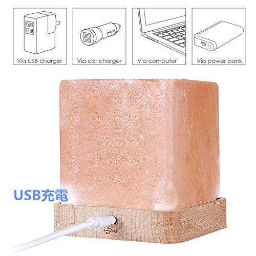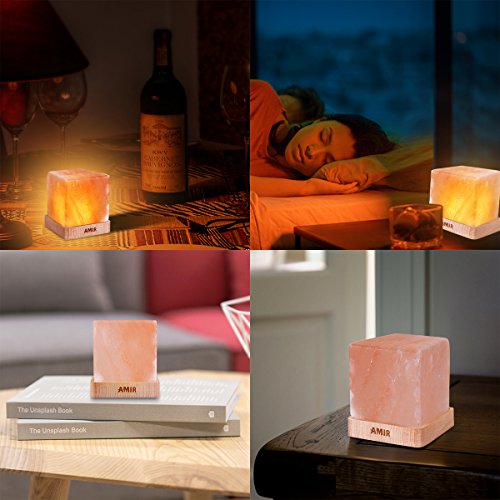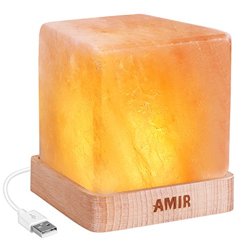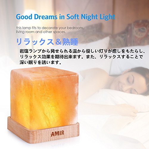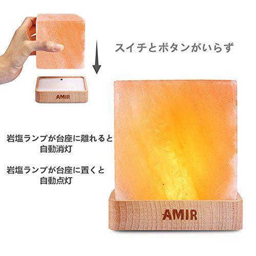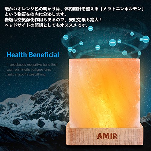 AMIR 天然 ヒマラヤ岩塩ランプ USB充電 ソルトランプ 台座木製 分離式 空気浄化と癒しの灯り 室内照明 インテリア マイナスイオン効果/安眠効果 /癒し効果 岩塩ランプ