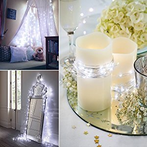 - ①【多機能リモコン付き、幻想的な雰囲気】小さなLEDが等間隔に付いたイルミネーションライトです。線は細いので目立なく、素材は銅線ですので好きな形を手軽に作ることができます。飾り付けも簡単、LEDの明るさやデザインを利用して良い雰囲気を醸し出しましょう!さらに本機は5メートル以上の長さで50LEDを搭載、広く飾ることができます。さらにさらにMODEのボタンを押すたびに点灯パターンが切り替わります。全部で8パターンの光の演出を楽しむことができます。そして、タイマー設定機能付け、自動的に6時間オン、18時間オフことができます。