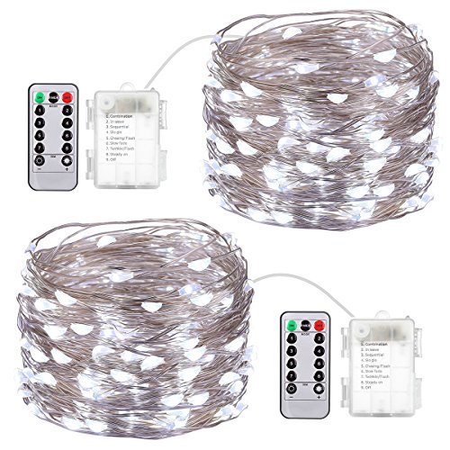 AMIR LED ストリングライト イルミネーションライト 16.4Ft 50LEDs 2個セット 電池式 フェアリーライト ジュエリーライト クリスマス 飾りライト リモコン付き 8パタンで切替可 点滅 ワイヤーライト アウトドア 室内 屋外 パーティー クリスマス 結婚式 誕生日 防水 飾りライト ホワイト