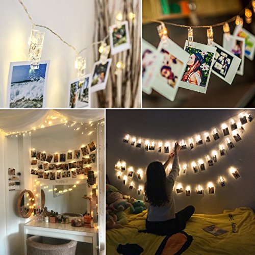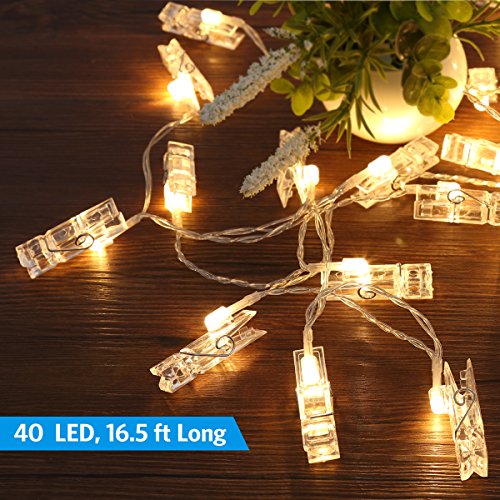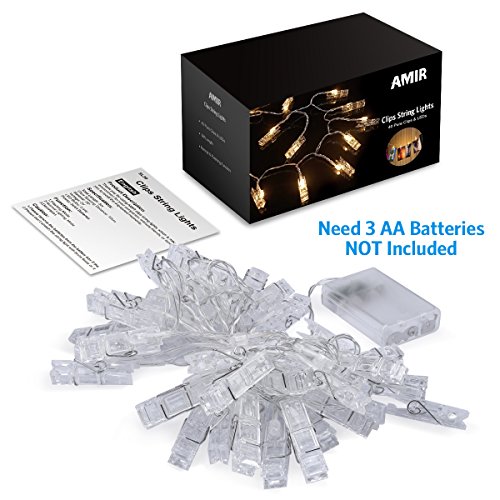 AMIR ストリングスライト フェアリーライト 40写真クリップ イルミネーションライト 飾りライト ワイヤーライト DIY壁飾り クリスマス 新年 結婚式 誕生日 パーティーなどに最適(40LED,5m)