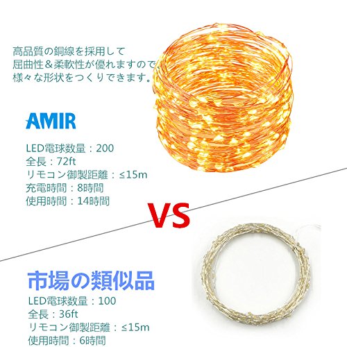 AMIR LED イルミネーションライト ストリングライト ソーラー充電式 200led電球72フィート 装飾ライト フェアリーライトIP65防水 ledガーデンライト 電飾 飾り クリスマス・ツリー/パーティー/ベッドルーム/アウトドア/結婚式/庭対応 電球色