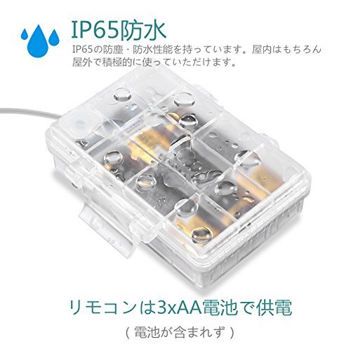 - 【防水】:銅線とLEDライトは防水仕様で、コントローラー部分にはしっかりパッキンが入っているおり、水やホコリをシャットアウトします。