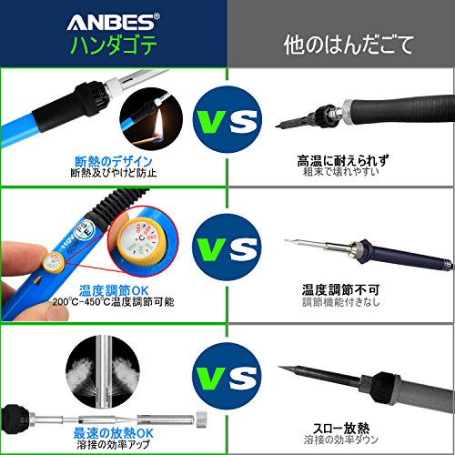 Anbes はんだごてセット 8点セット 温度調節可 基盤 修理補修 日本PSE認証済 60W/110V 収納ケース付