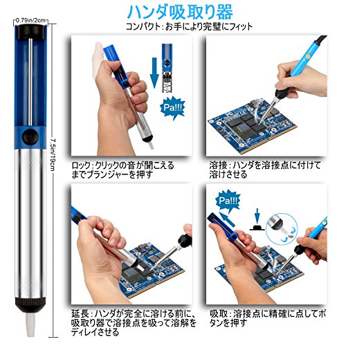 - ◎「改良点-安全のために」①4つの通気穴が効果的に放熱され、はんだごてのサービス時間が延長されます。また、改良された電路基板はチップ固定抵抗器を搭載し、放熱にも役立ちます。②セラミックヒーターの内部加熱工芸を採用いたし、本体が軽くて、加熱/放熱機能が最速で、焼損が相当程度で避けられます。③電線が90CMで、長距離に溶接をあやつって働かせます。④60W / 110Vの仕様、ダイヤル式で200℃から450℃まで温度調節が可能である高級製品です。