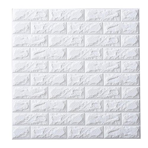 3D立体壁紙 DIYレンガ調壁紙シール 70x77CM ウォールステッカー 軽量レンガシール 壁紙シール 自己粘着 防水 多色選択 (70*77cm(10枚入れ), パールホワイト)