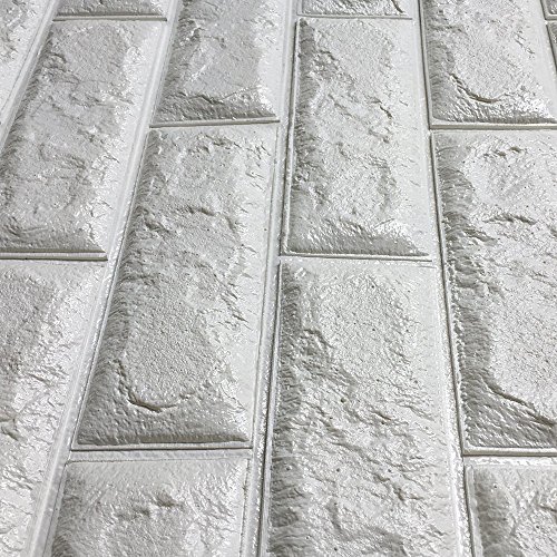 3D立体壁紙 DIYレンガ調壁紙シール 70x77CM ウォールステッカー 軽量レンガシール 壁紙シール 自己粘着 防水 多色選択 (70*77cm(1枚入れ), パールホワイト)