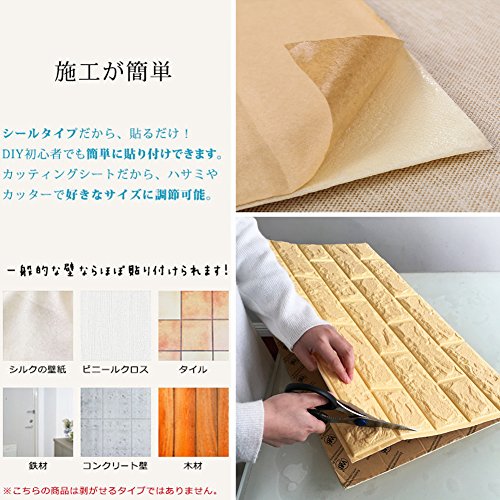 - 【商品特性】クッションタイプのブリック壁紙です。シールタイプなので施工も簡単。無塗装し、無ツールし、自己粘着なので、簡単に綺麗に壁に貼ってはがせます。数分以内に装飾完成します。クッションタイプでやわらかいので、子供部屋など危険がある生活空間で、クッションガードとして安全に使用することができます。お手頃価格なので、プレゼントにもオススメです!